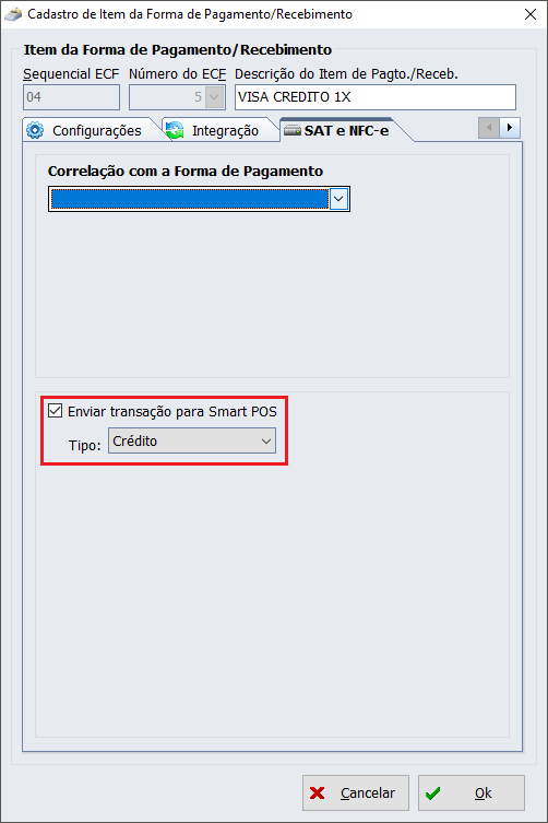Para atender esta demanda, foi criada a seguinte configuração na forma de recebimento POS: