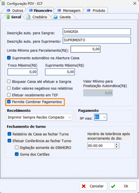 Permitir que o cliente finalize uma única compra utilizando mais de uma forma de pagamento. Deverá ser setada a seguinte configuração:
