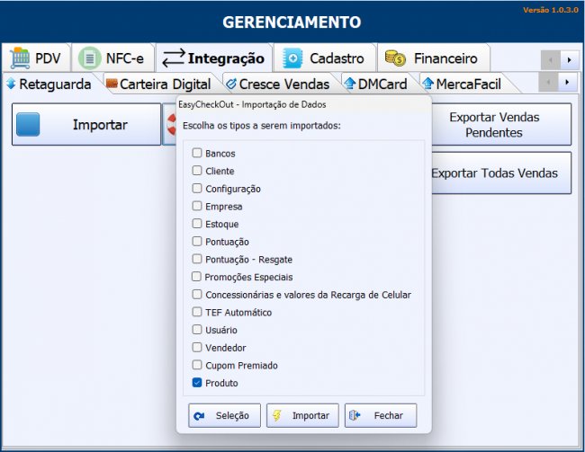 Agora ao clicar para escolher a importação, a opção para fazer a de produtos já estará marcado. Segue: