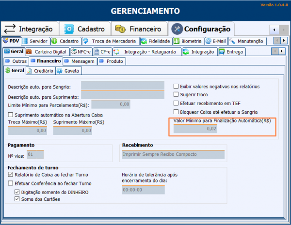 Com isso na tela de fechamento irá aparecer a seguinte opção: