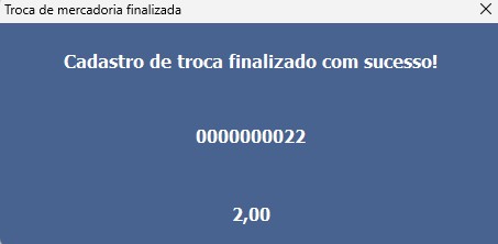 Será exibida a tela “Troca de Mercadorias”, conforme ilustrado na imagem abaixo.