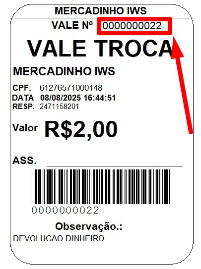 Com o Vale em mãos, é só informar o número do vale no campo indicado, conforme imagem abaixo.