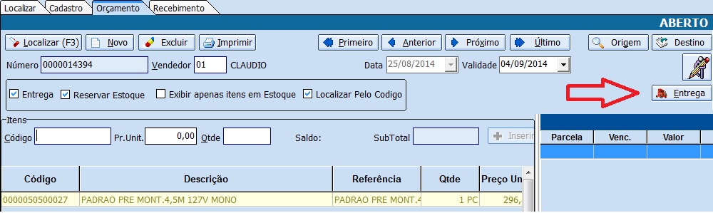 Melhoria que permite ao usuário agendar uma Entrega sem a confirmação do Orçamento. Este agendamento ocorre através do botão “Entrega” que será habilitado quando o orçamento tiver itens e será desabilitado quando for feito o pré agendamento financeiro ou o orçamento for impresso/confirmado.