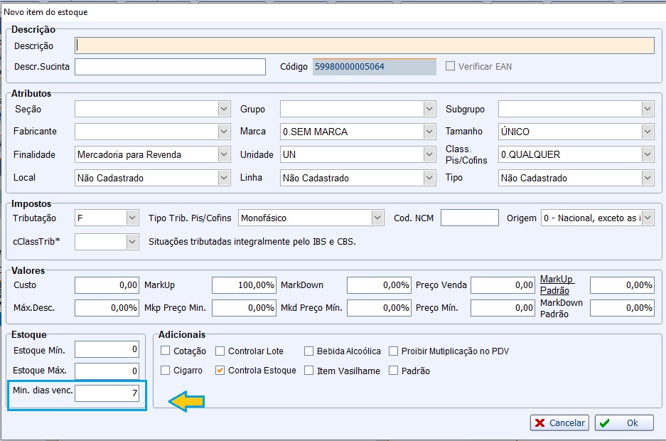 Criado nova configuração (1036), nomeada Balança: Imprimir Data da Embalagem, sua função é definir se será impresso, nas etiquetas, a data da embalagem. Até então essa informação só era impressa quando o produto possuía validade em dias.