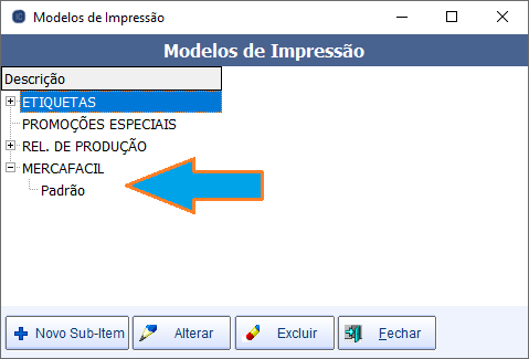 Foi adicionado, nas configurações de modelo de impressão (Gerenciamento → Configurações → Modelos de Impressão), o cadastro de modelos de impressão para o Mercafácil.