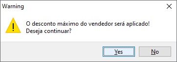 Referente a melhoria para que o usuário seja informado se deseja aplicar o desconto máximo do vendedor no orçamento ao dar um desconto na tela de descontos (botão Desconto Item) e dar esc na permissão de usuário.