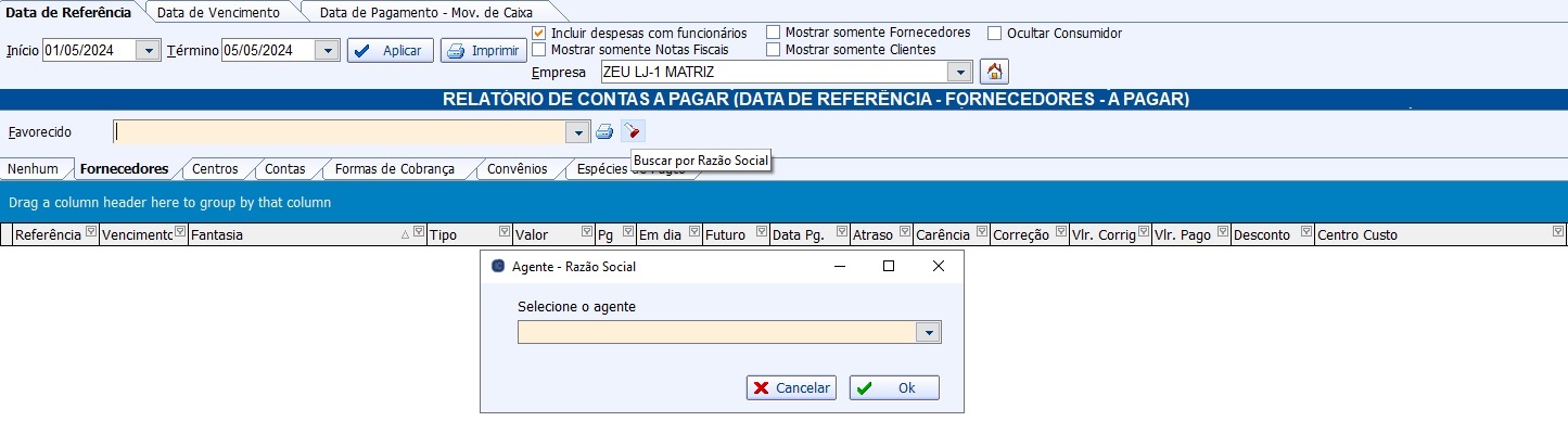 Referente a melhoria no relatório de cartões possibilitando selecionar quais empresas deseja visualizar no relatório (botão ao lado do campo empresa).
