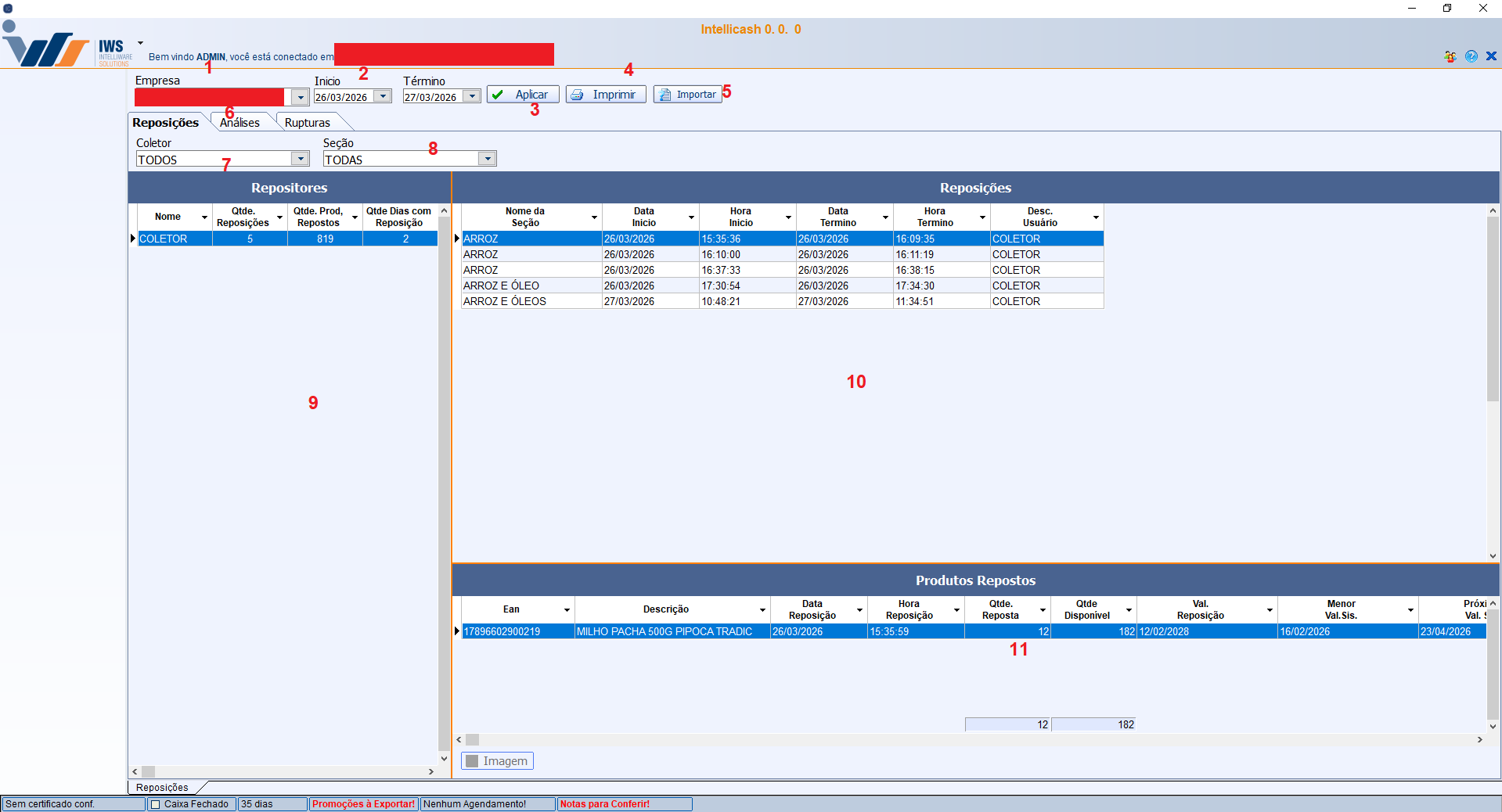- Botão para aplicar e buscar reposições