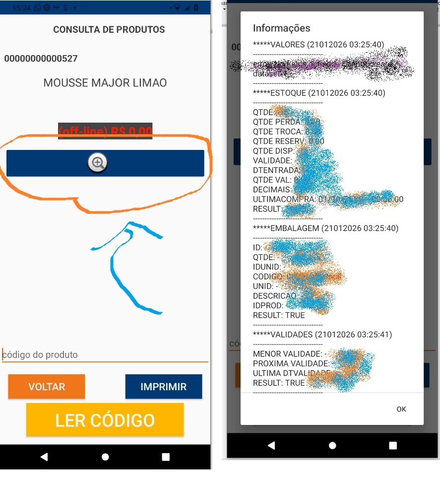 Para visualizar as informações basta clicar no botão da lupa que aparece após um produto ser lido e indentificado.