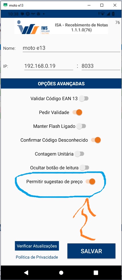 Ao realizar o recebimento de mercadorias no aplicativo ISA_NF. É possível adicionar uma sugestão de preço. Essa função partiu da ideia de produtos que venham com sugestão de preço. Como por exemplo: Refrigerantes. Para isso, basta acionar a configuração Sugestão de preço no aplicativo.
