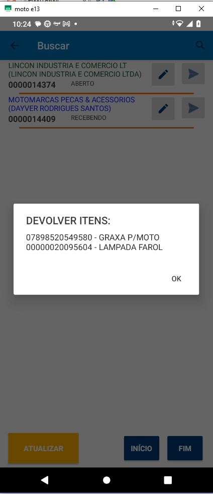 Na ordem de recebimento no Intellicash, os itens que são selecionados para devolução agora aparecem no Aplicativo ISA_NF. O intuito é auxiliar o usuário na separação dos produtos.
