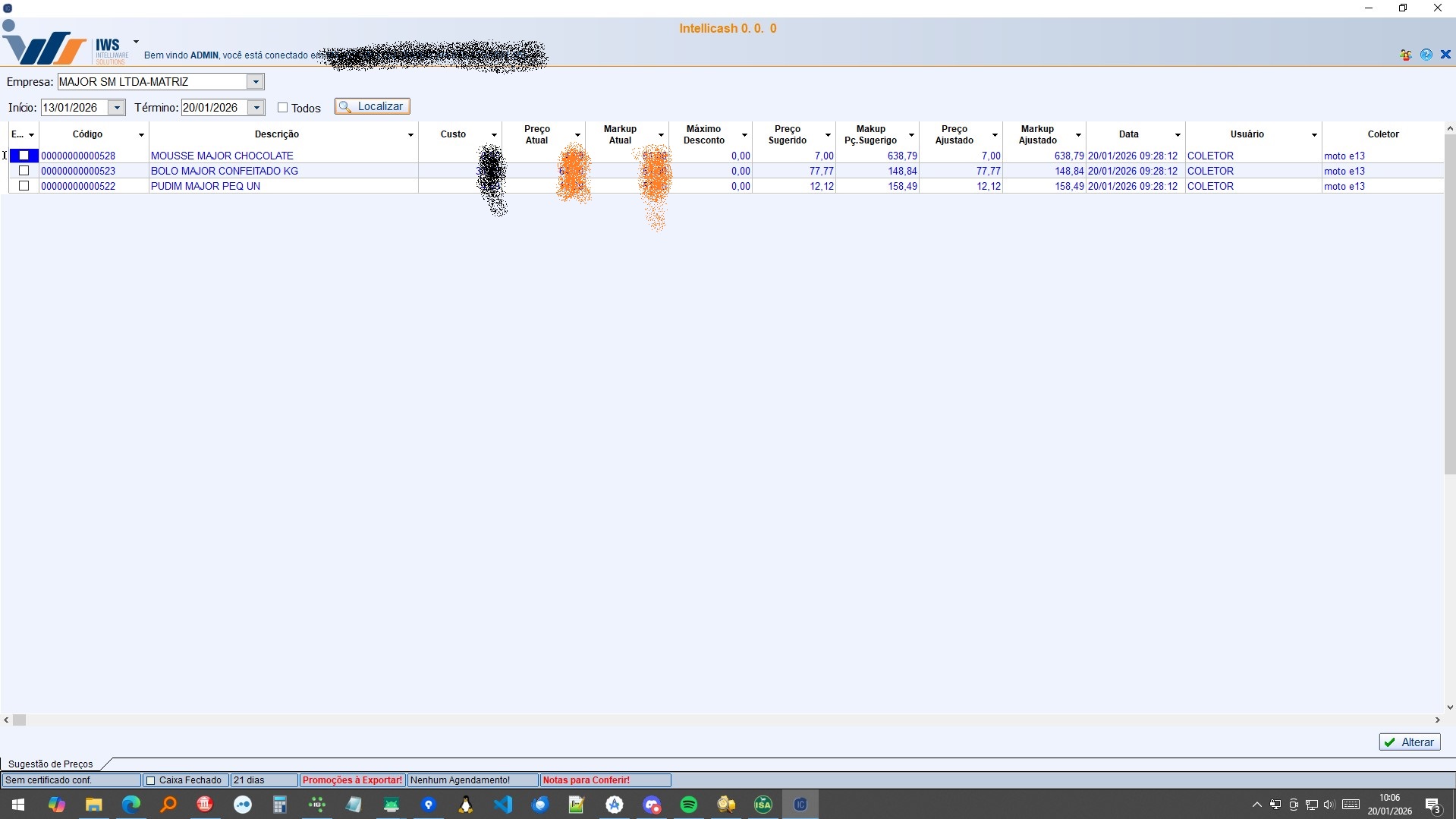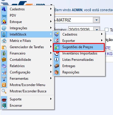 Para visualizar as informações inseridas no aplicativo. Deve-se ir no seguinte caminho no intellicash. Menu IWS → Intellistock → Sugestão de preço