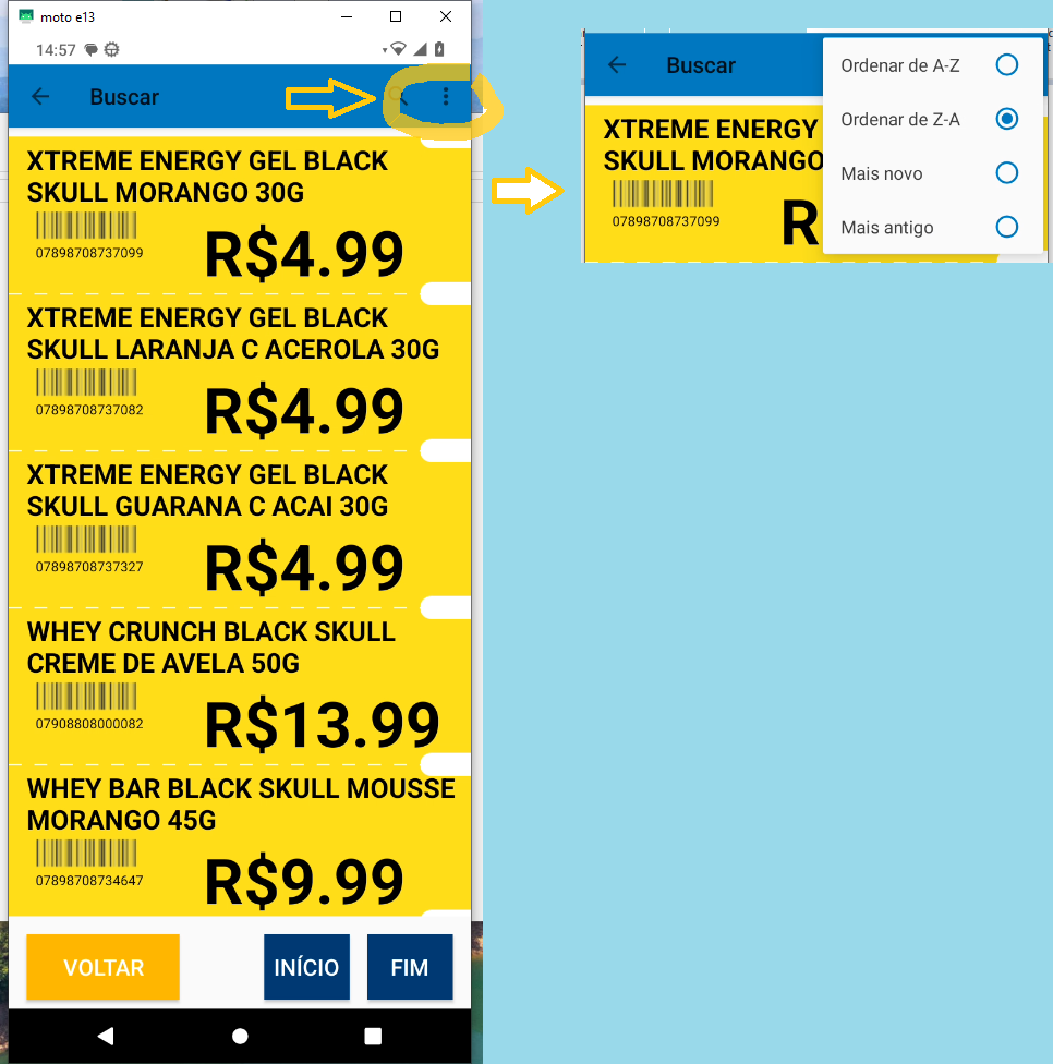 Atualizar Produtos: busca no servidor a relação de todos os produtos cadastrados, seja no IC ou no próprio ISA. Essa ação permite que a consulta de produtos possa ocorrer de forma offline.
