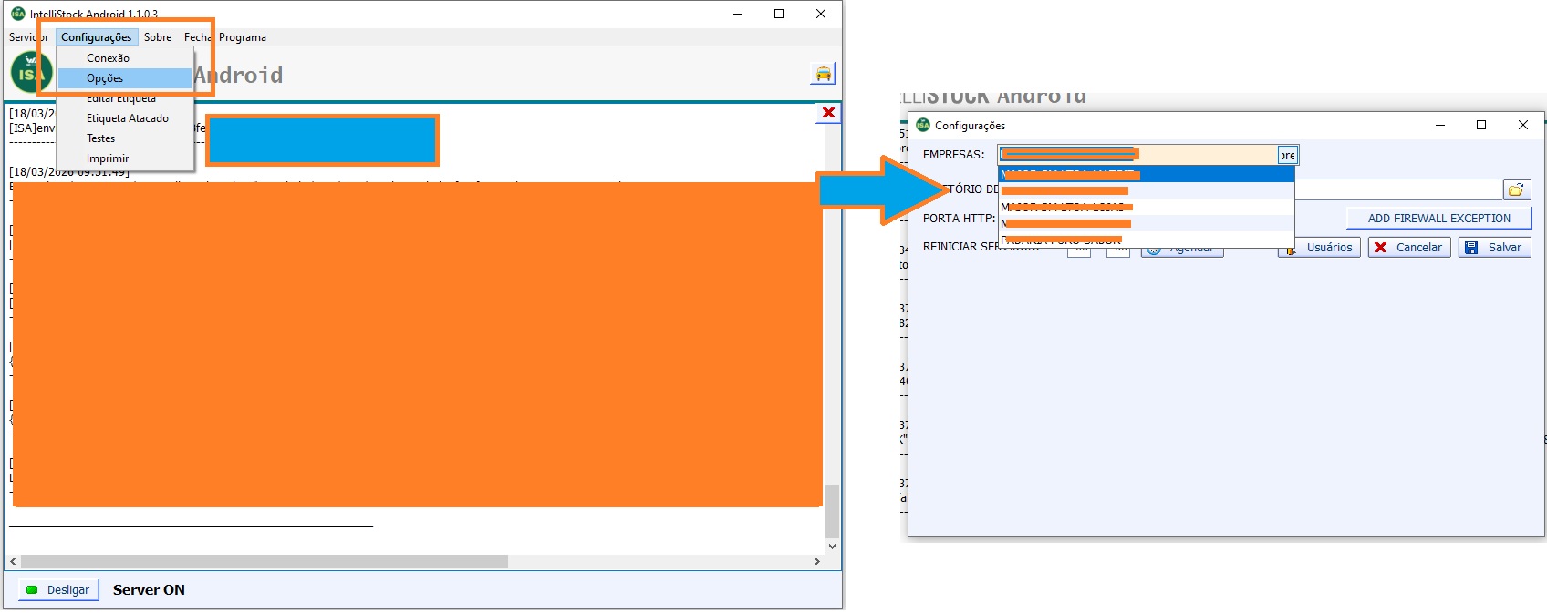 7 - Salve as configurações do celular e verifique na aplicação servidora se há logs