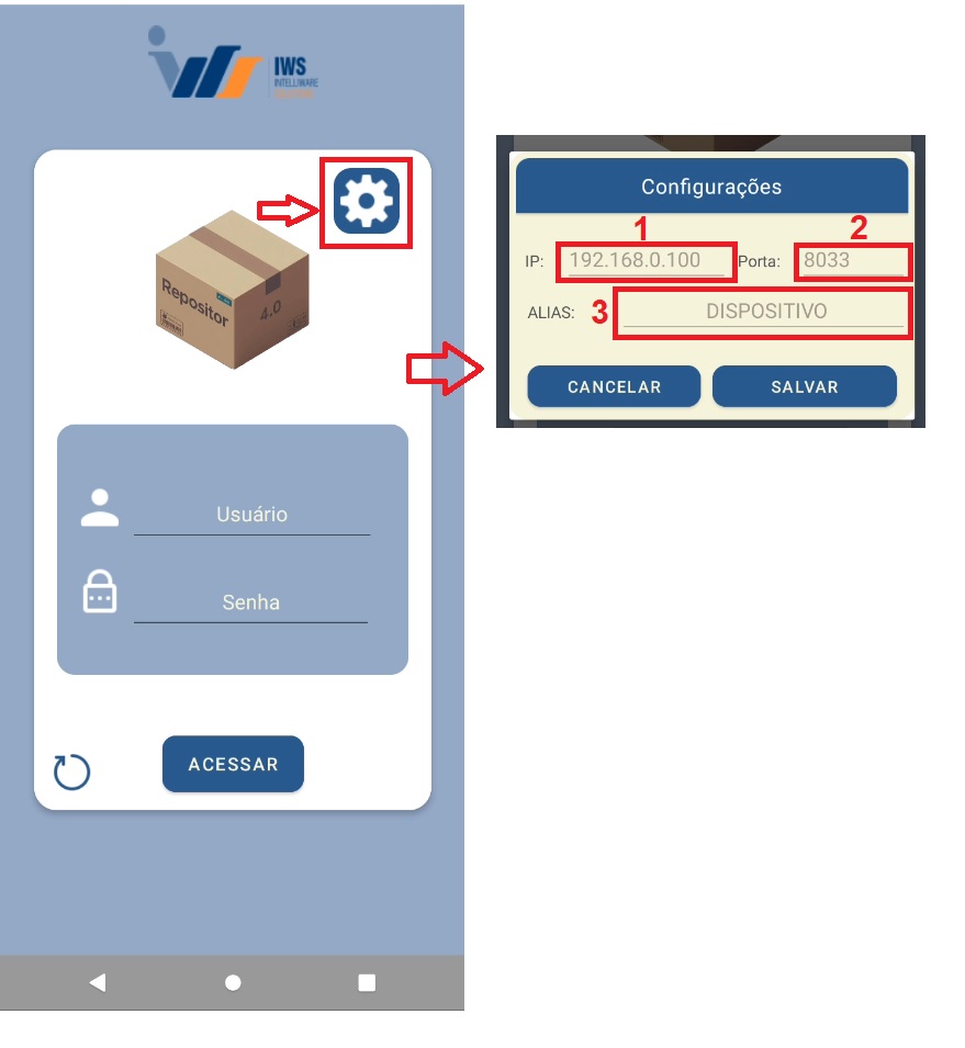 Para acessar a tela de Configurações, clique no botão Voltar na tela de Login.