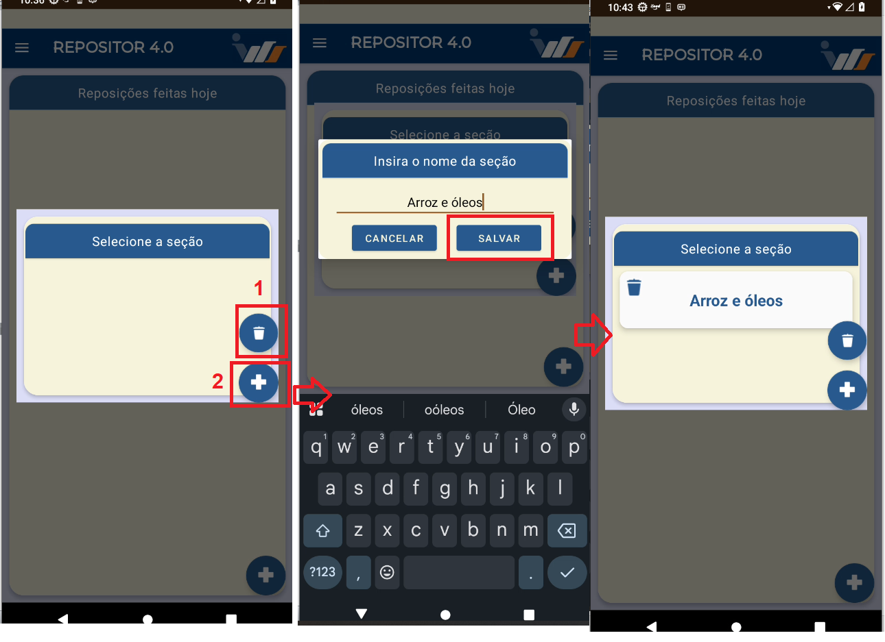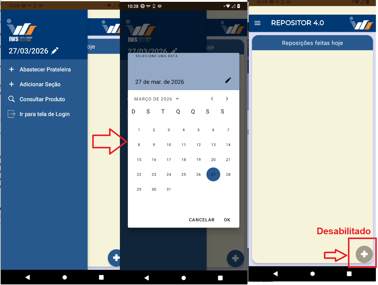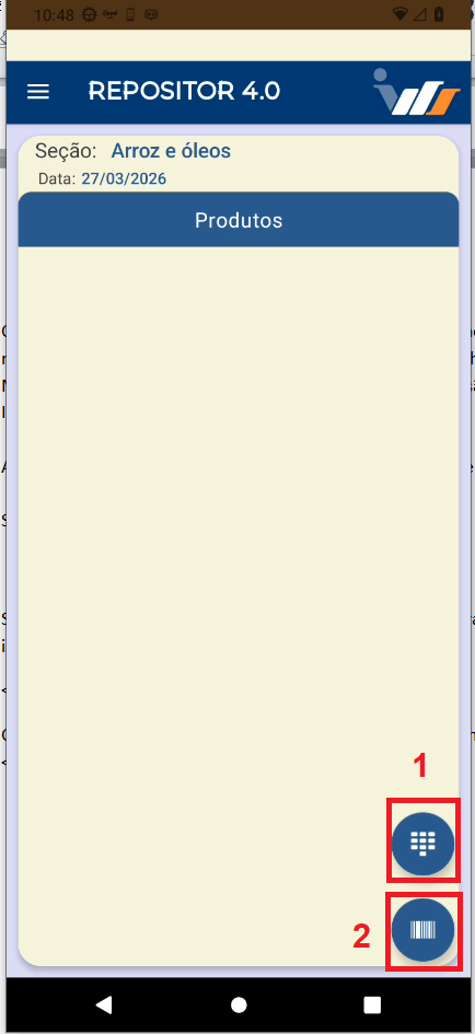 Após inserir os produtos, retorne à tela de reposições.
