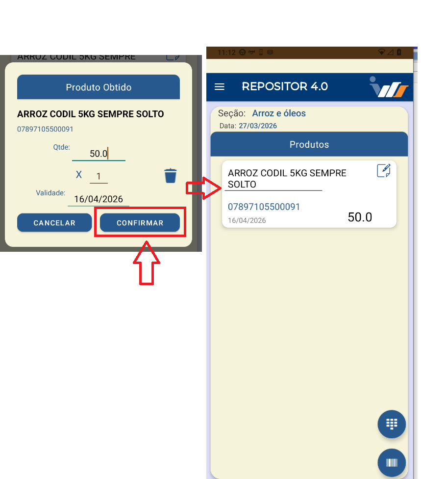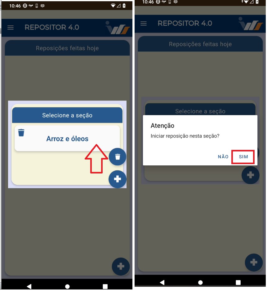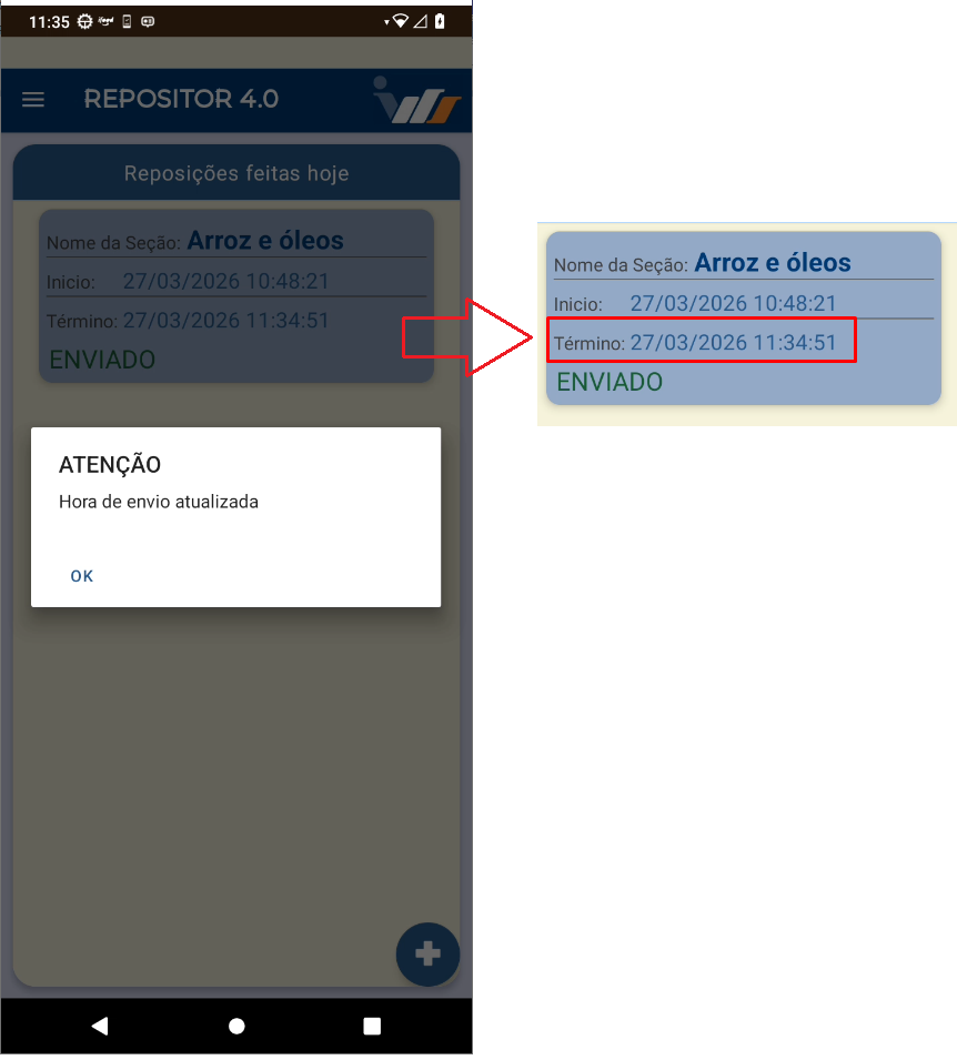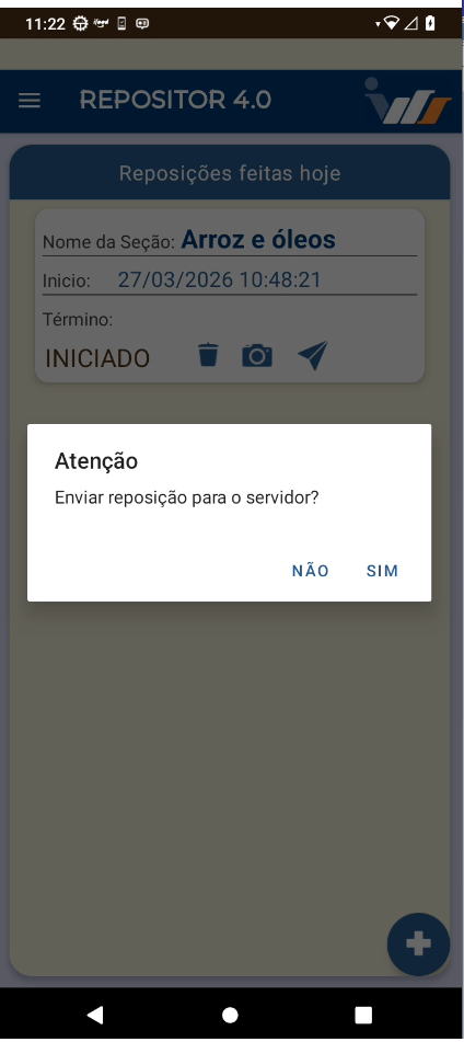 Após finalizar, a reposição será enviada ao servidor.