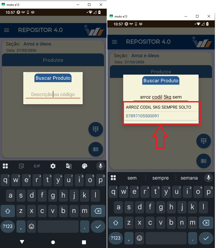 Tocar sobre o nome do produto não encontrado também abre a caixa pra dar nome ao produto.