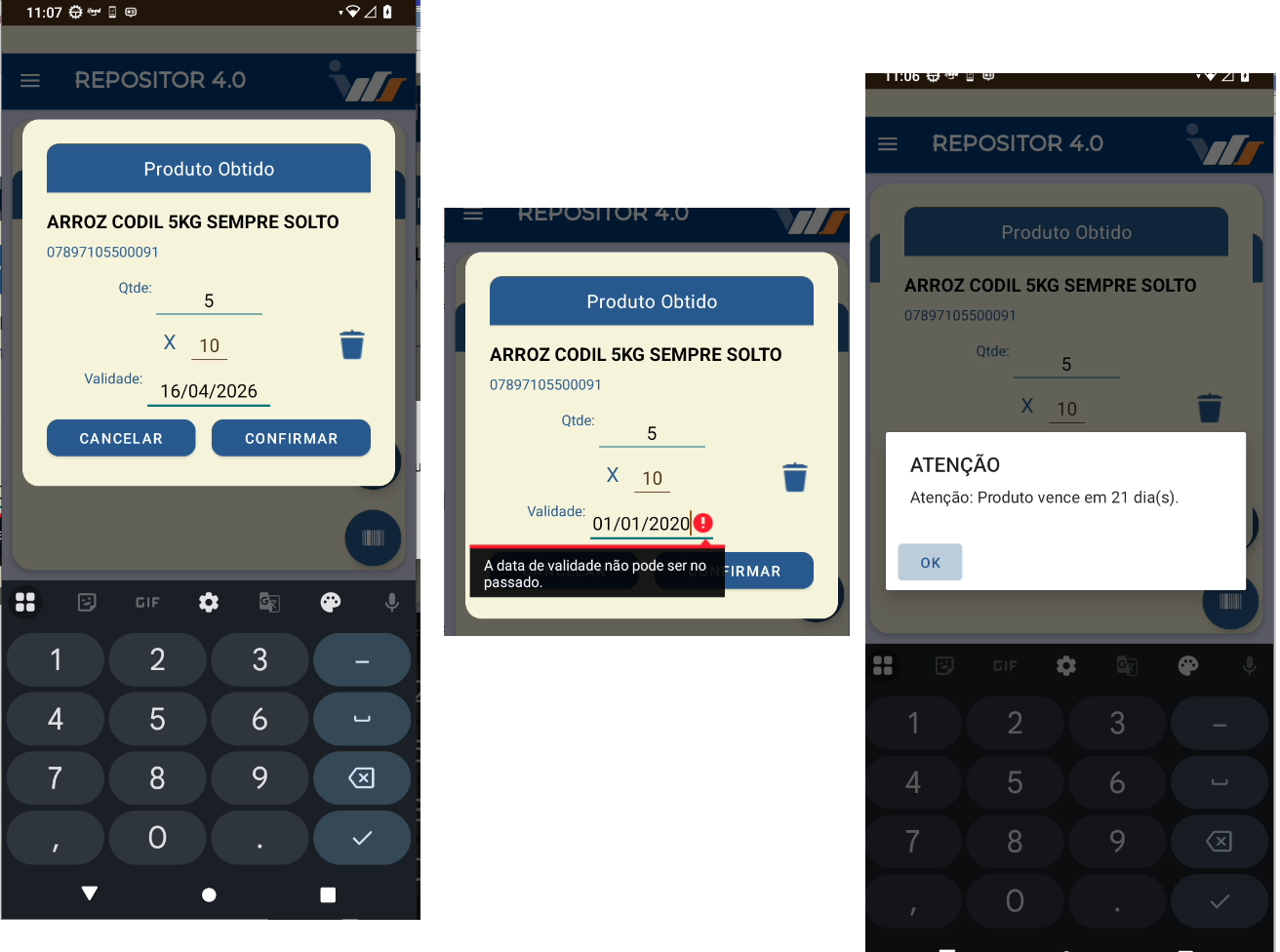 Para isso deve-se setar a configuração Pedir validade no menu de configurações do aplicativo.