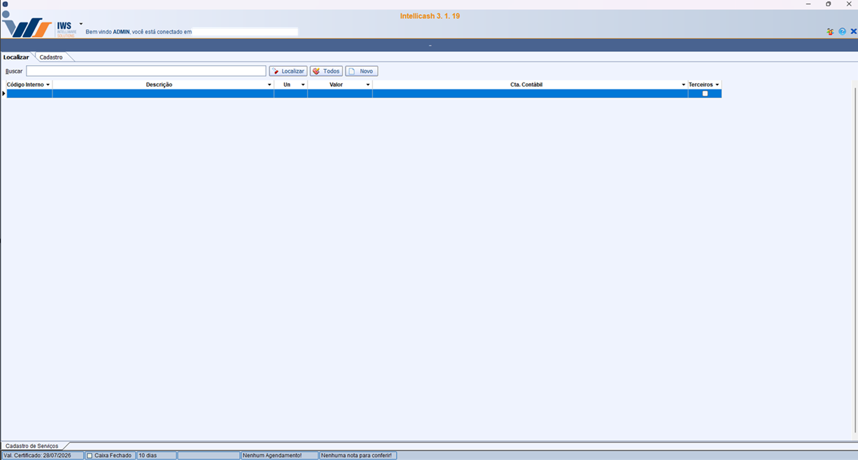 | Gerenciamento→Cadastros→Serviços |