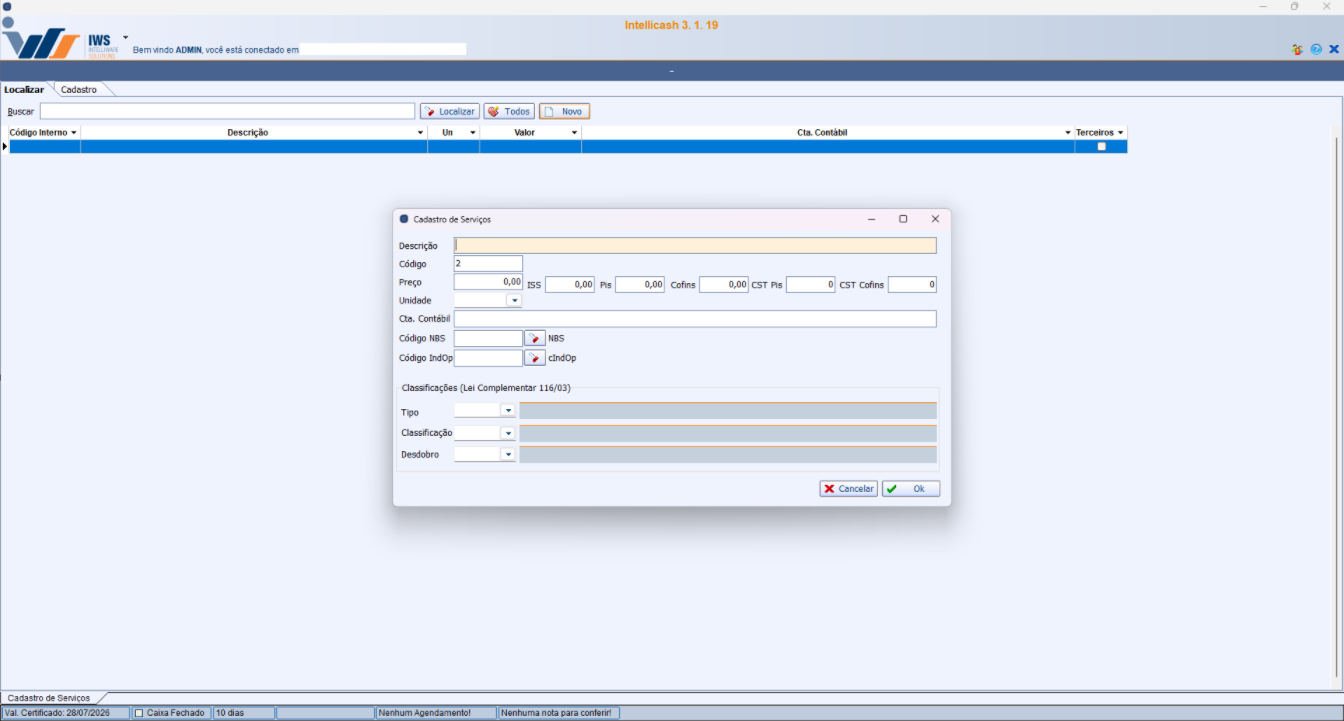 Após todo o preenchimento dos referidos campos, basta clicar em ok para que o serviço seja cadastrado. Clicando em cancelar, a operação é abortada.