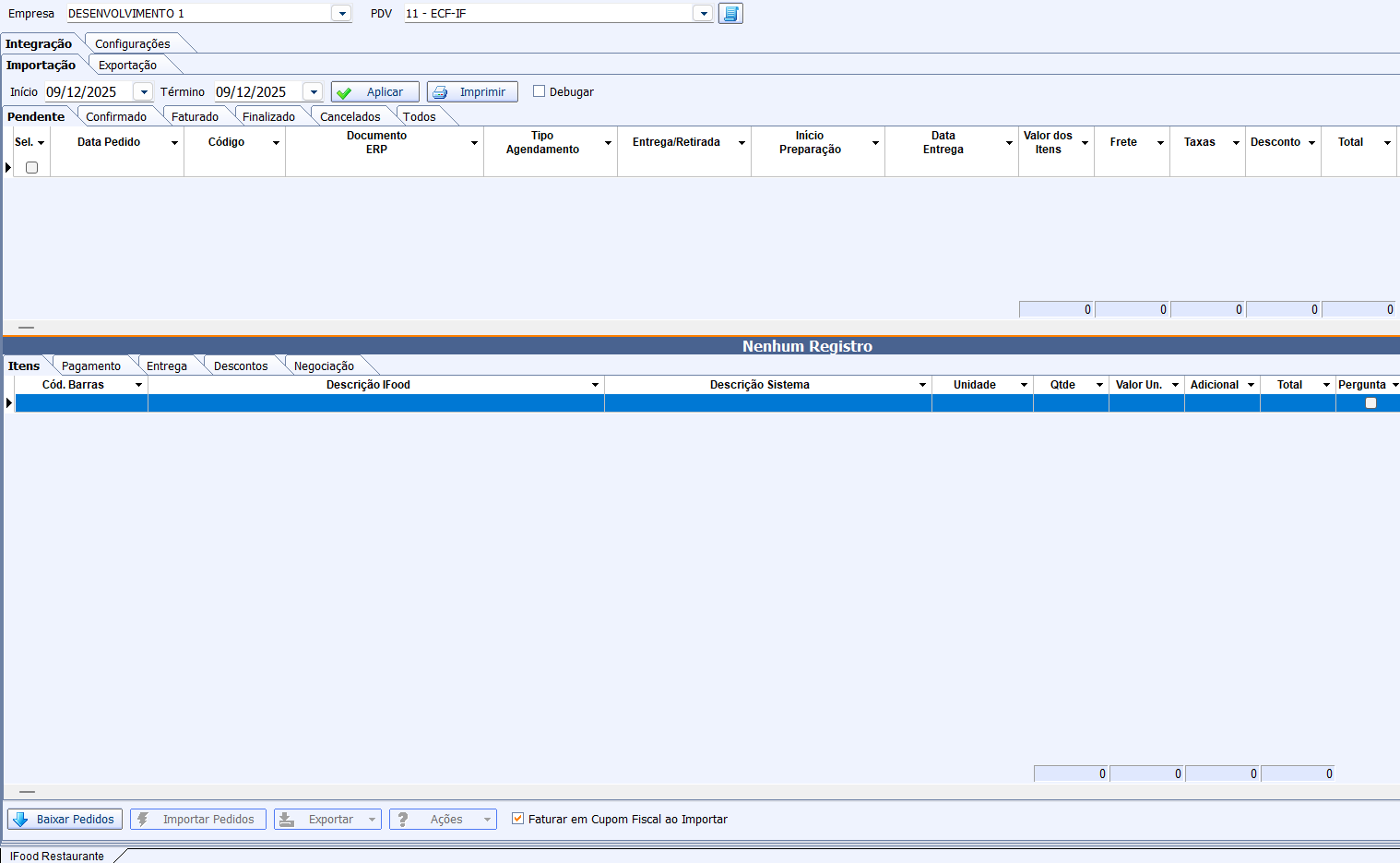 Conecta-se ao iFood e baixa os pedidos mais recentes para o ERP.