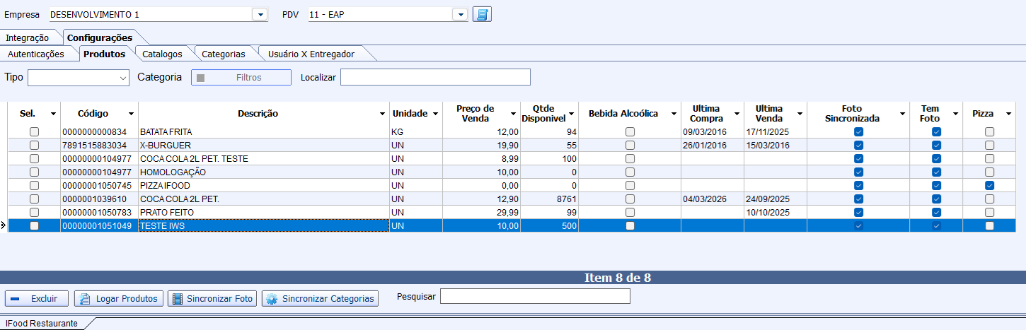 A integração também contempla processos relacionados ao cadastro e atualização de itens, garantindo aderência entre o cardápio interno e os produtos ofertados no iFood.