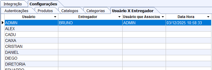 Para facilitar mais o processo, também foi adicionada a aba Usuário X Entregador igual foi feito nas configurações do Food, onde será possível víncular entregadores com o usuário logado no sistema, assim caso o entregador esteja ativo, será automáticamente preenchido ao abrir a tela ou precionar o refresh.