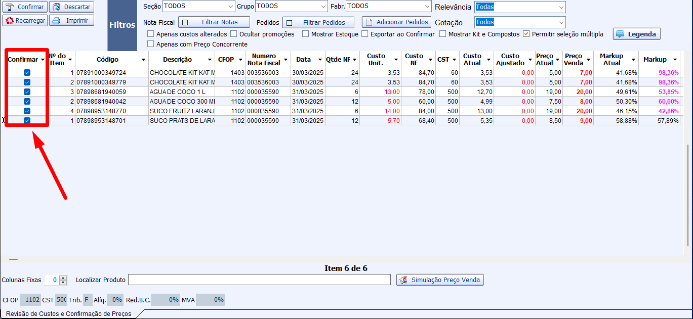 CONFIRMAÇÃO DE PREÇOS
