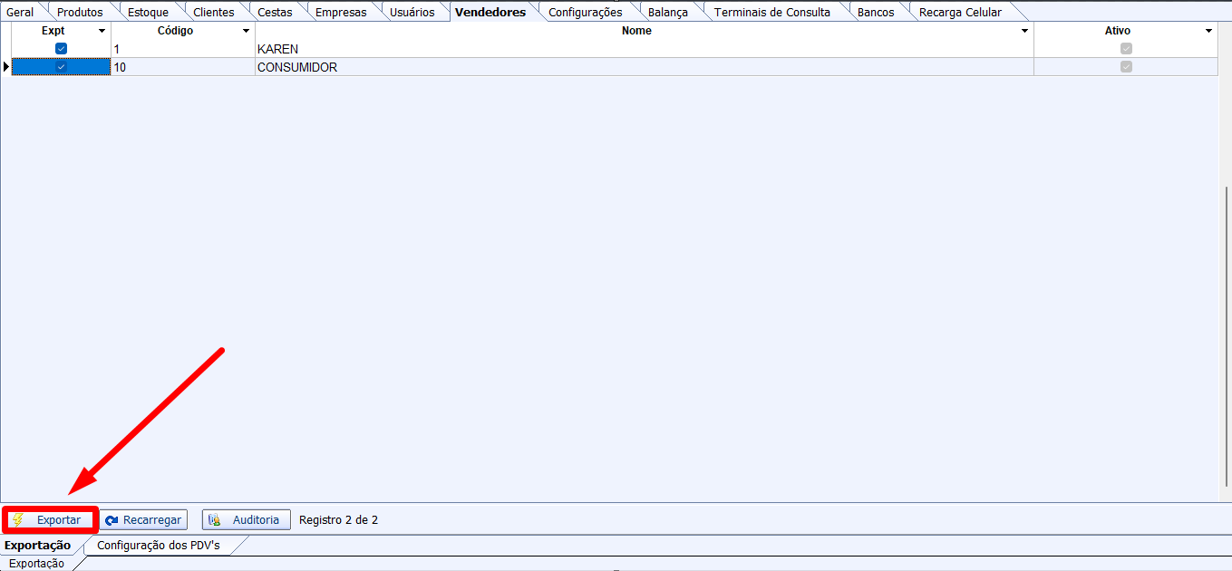 EXPORTAÇÃO PARA PDV