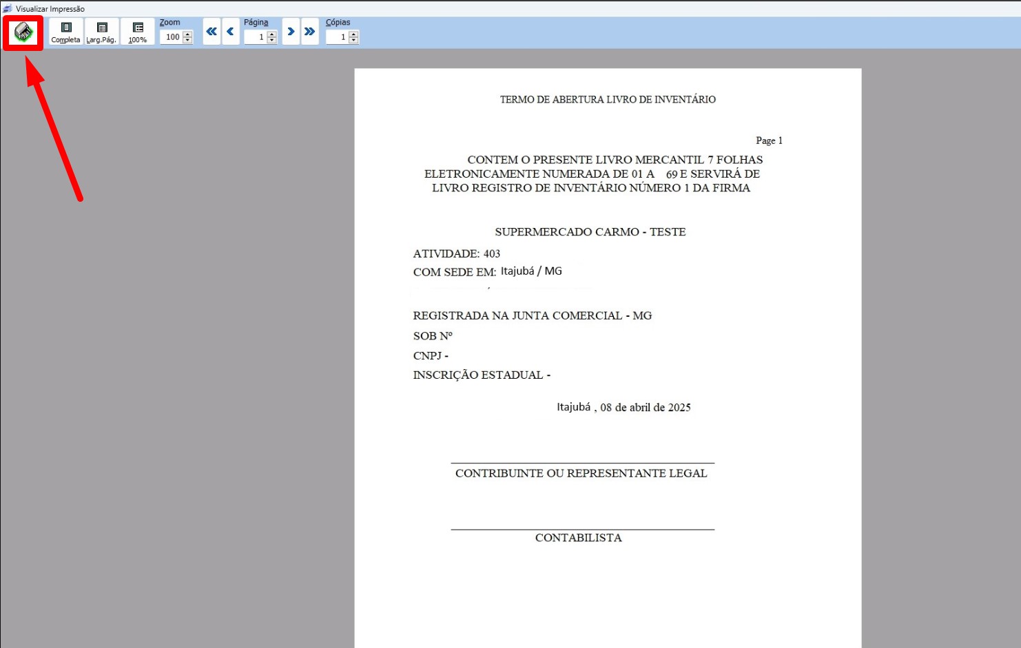 GERAÇÃO DO LIVRO DE INVENTÁRIO