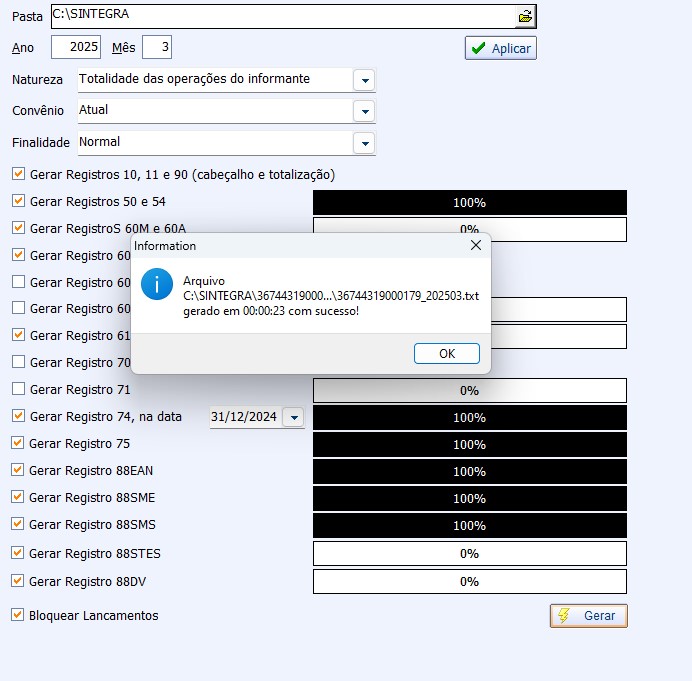 GERAÇÃO DO ARQUIVO SINTEGRA