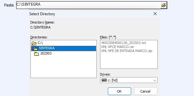 GERAÇÃO DO ARQUIVO SINTEGRA