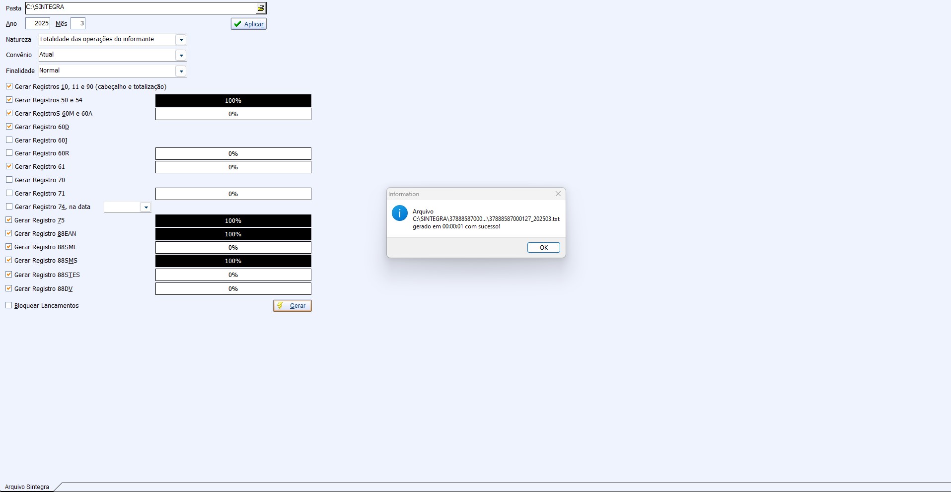 GERAÇÃO DO ARQUIVO SINTEGRA