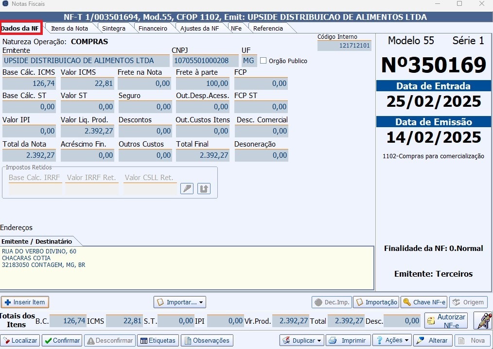 LANÇAMENTO DE NOTAS FISCAIS DE ENTRADA
