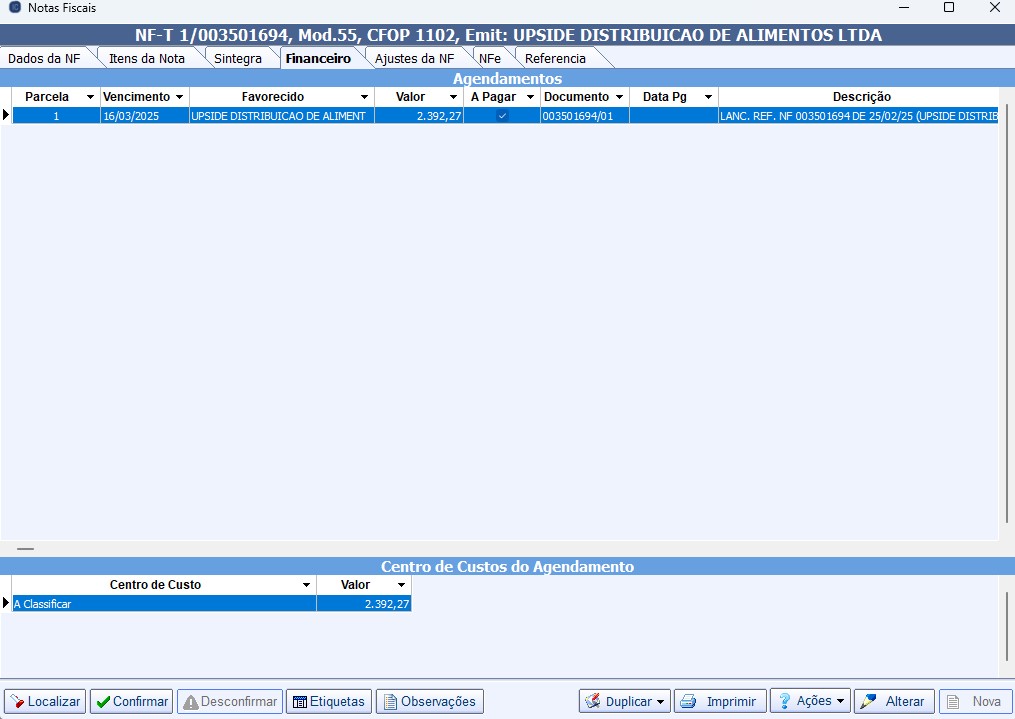 LANÇAMENTO DE NOTAS FISCAIS DE ENTRADA