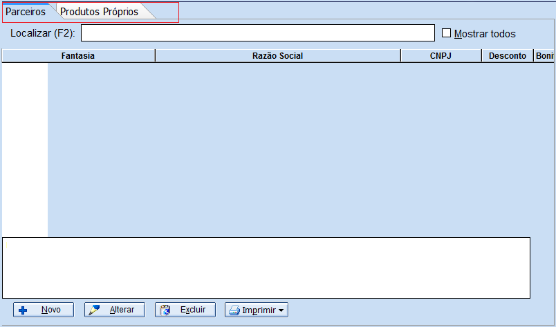 Cadastro de Fornecedores Parceiros e Produtos Próprios